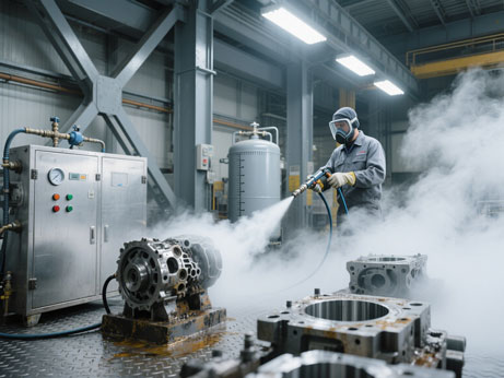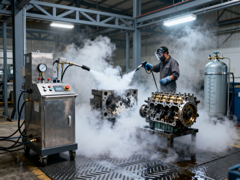 在工業清潔領域,一場靜悄悄的革命正在發生。它沒有高壓水槍的轟鳴,沒有化學溶劑的刺鼻氣味,取而代之的是一股冰冷的“煙霧”和工件煥然一新的光澤。這就是干冰清洗技術——一種高效、環保且極...